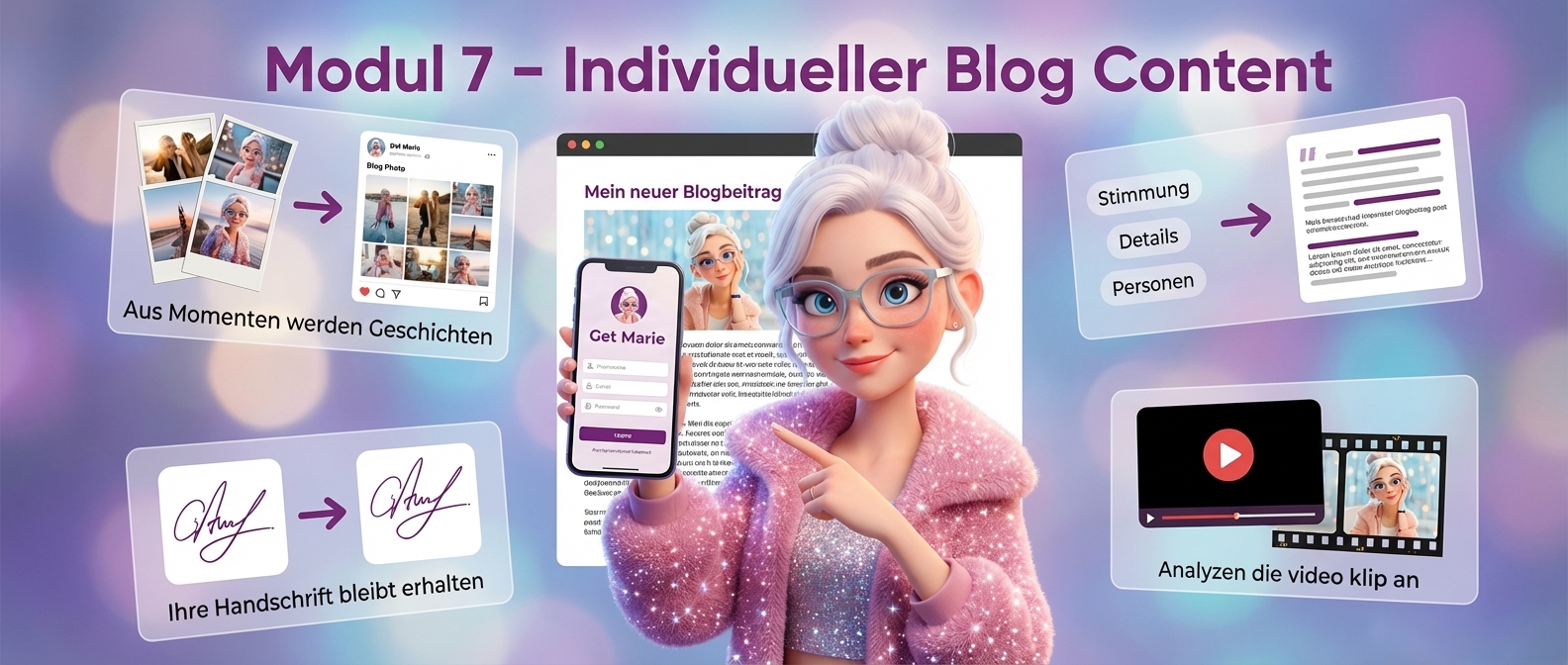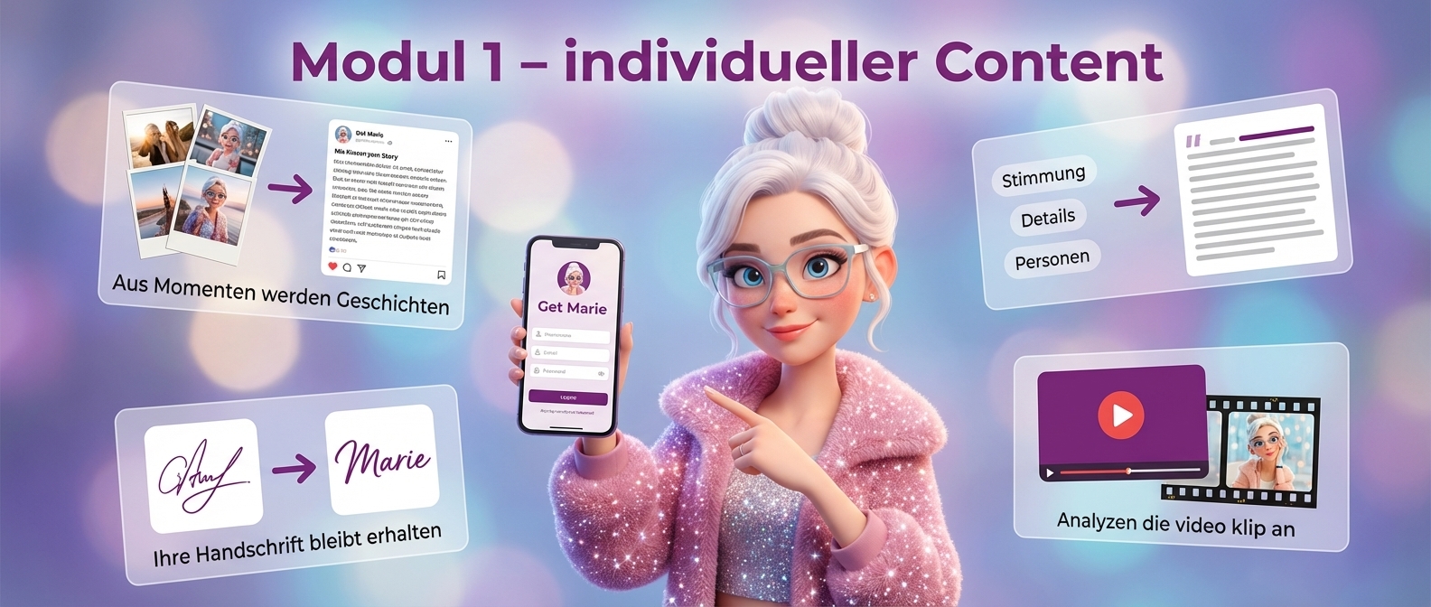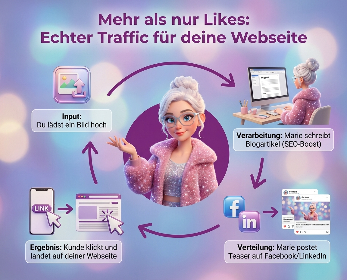 Marie rät nicht. Sie nutzt deine eigene Website, PDFs und Dokumente als Quelle, damit jeder Text fachlich korrekt ist und nach dir klingt.
