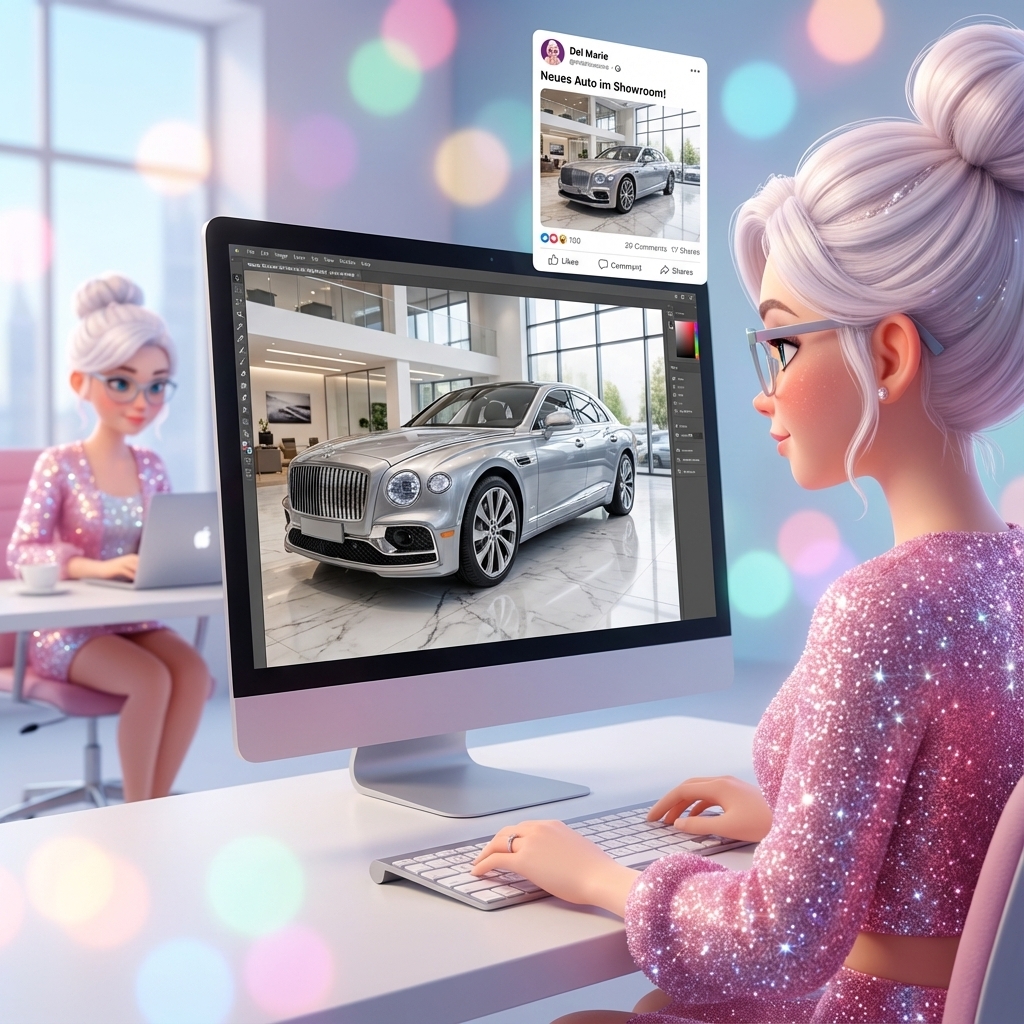 Schluss mit generischen KI-Fakes. Marie integriert dein Logo, dein Team und deine Produkte automatisch und konsistent in neue Bild-Szenen.